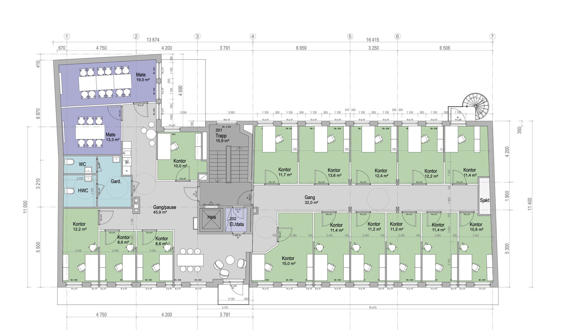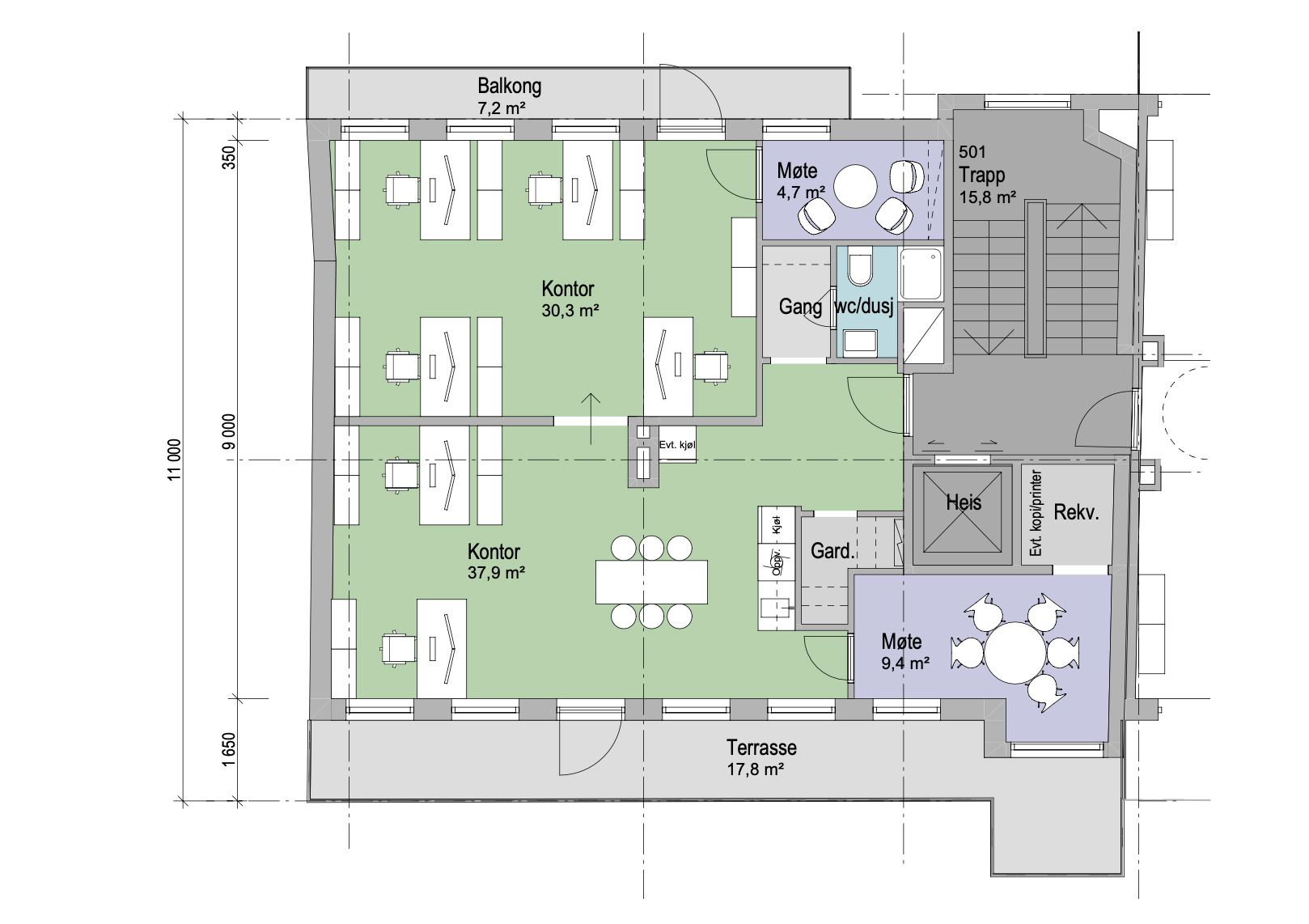Vi har pt ledige lokaler i 2. og 5. etasje.